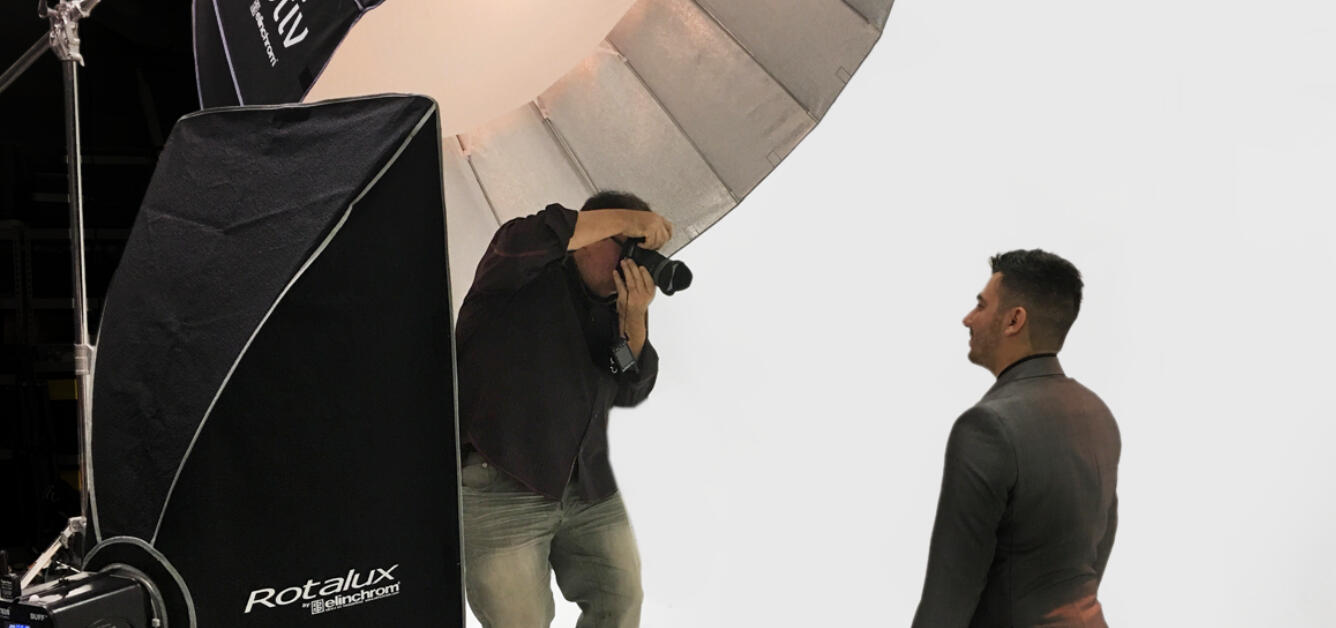 Our pristine white backdrop features a seamless 180° curve with three walls,